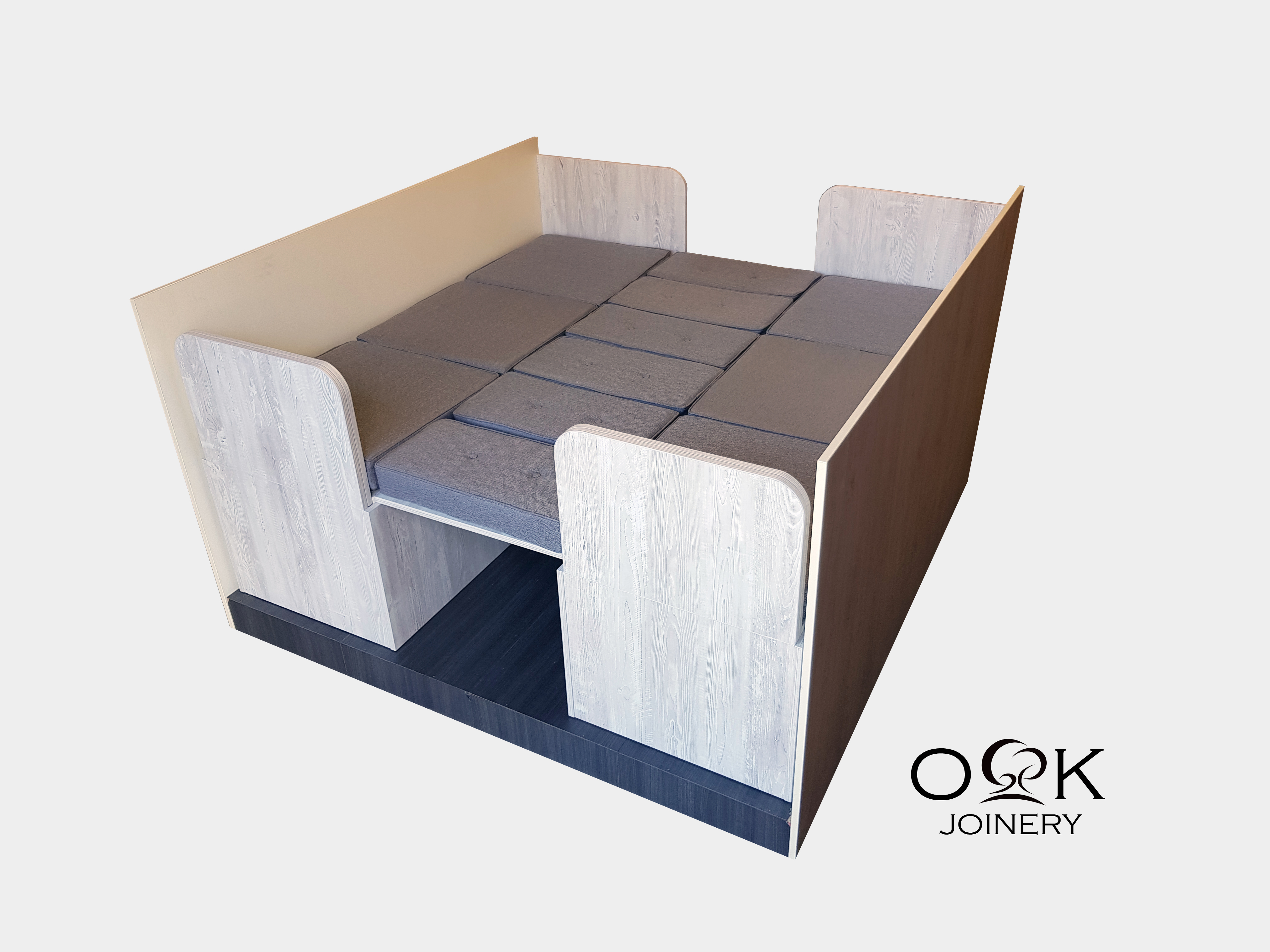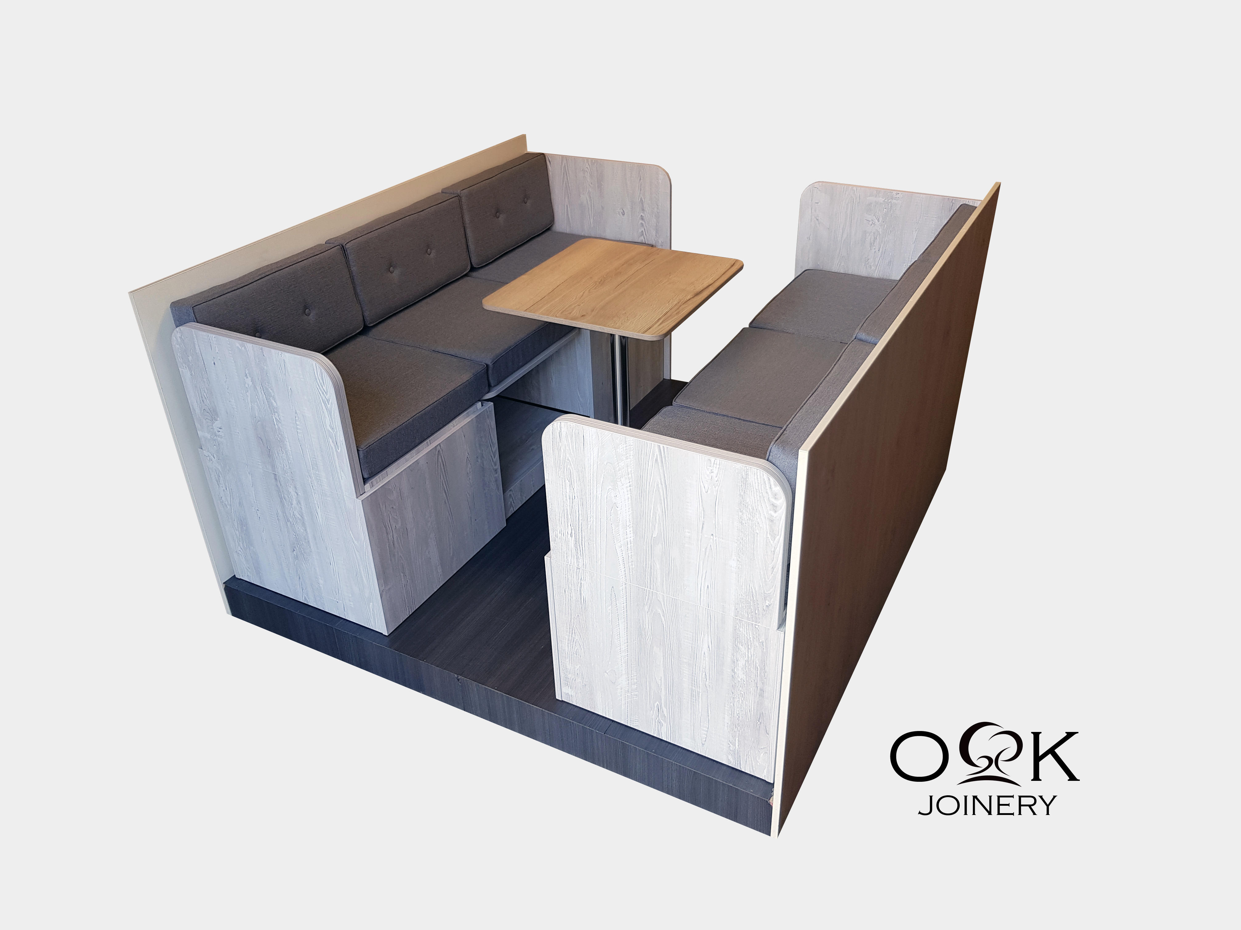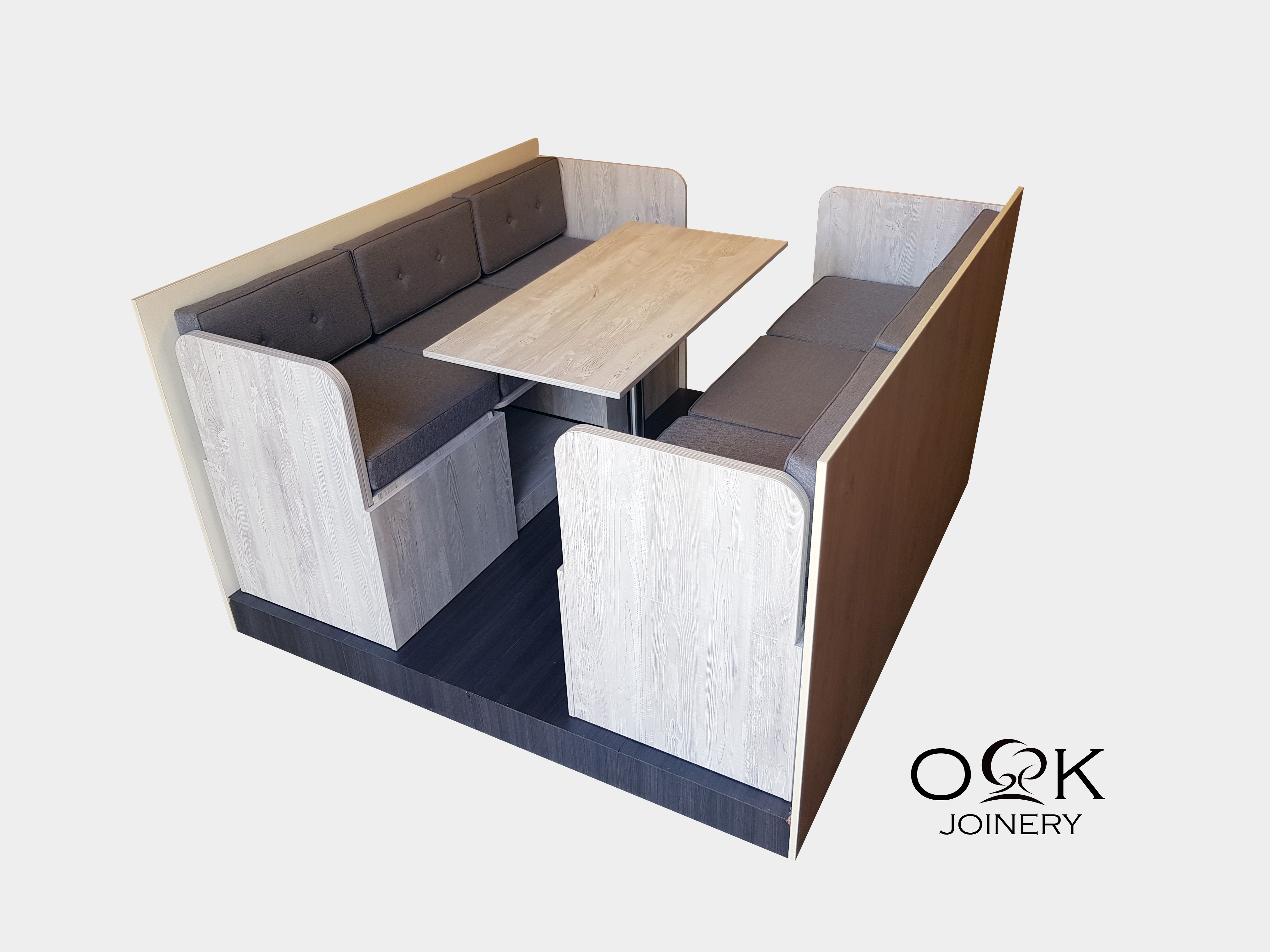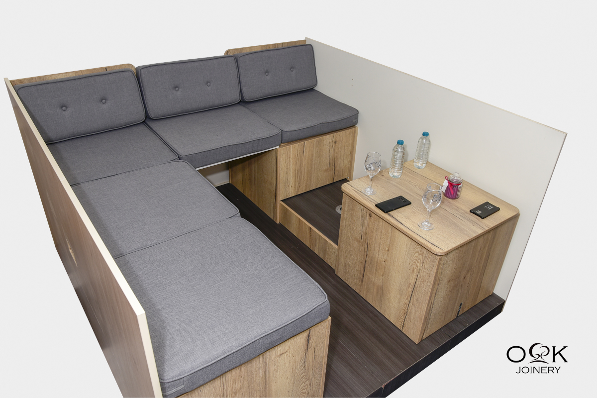 Small spaces need to be carefully curated. The furniture selected must reflect individual tastes and consider personal preferences. As with our dinette collections, OK Joinery multifunctional furniture is entirely customisable. Select from a wide variety of woodwork and cushion colours and we will deliver a bespoke piece that complements your living-space interior.