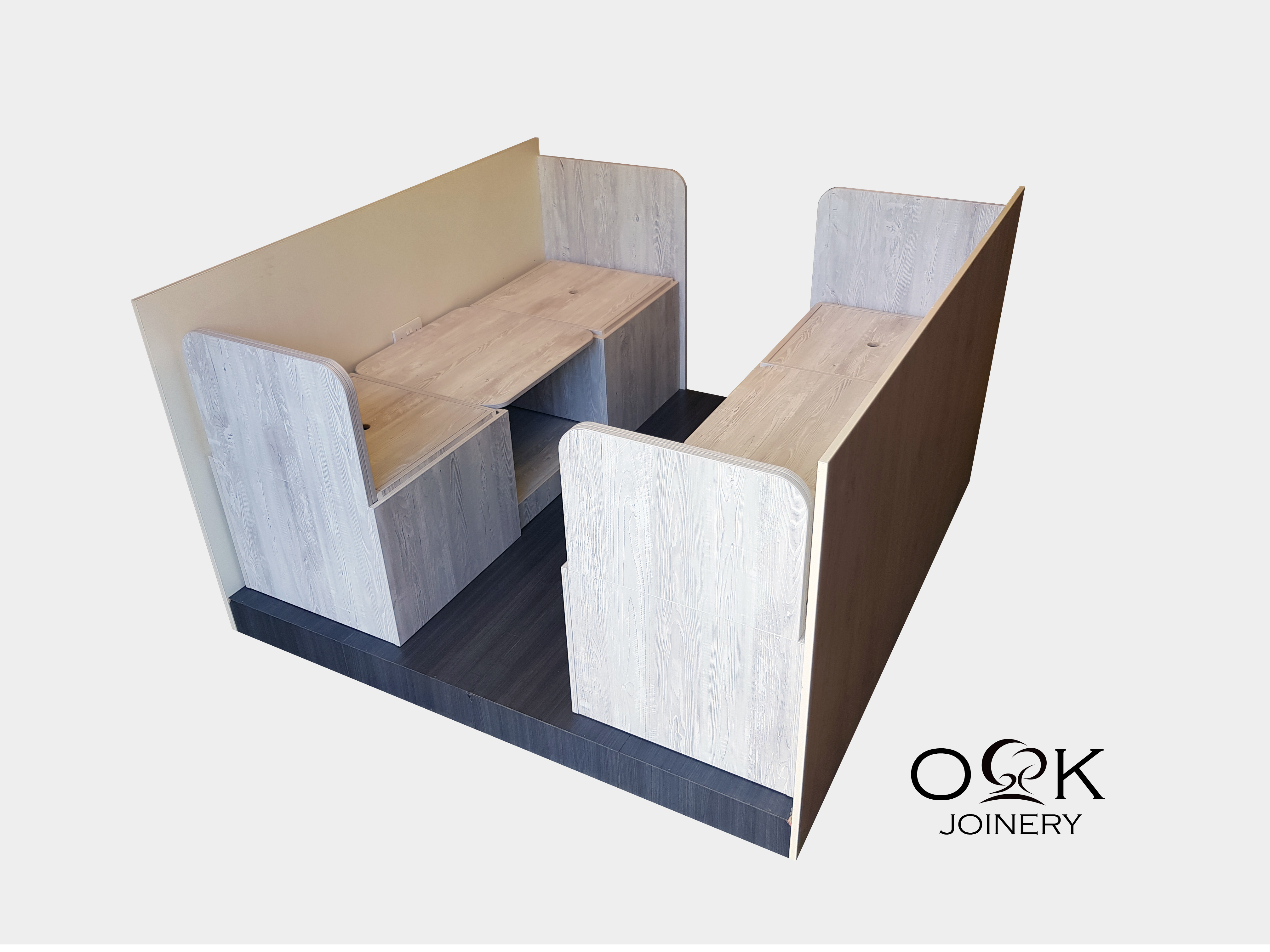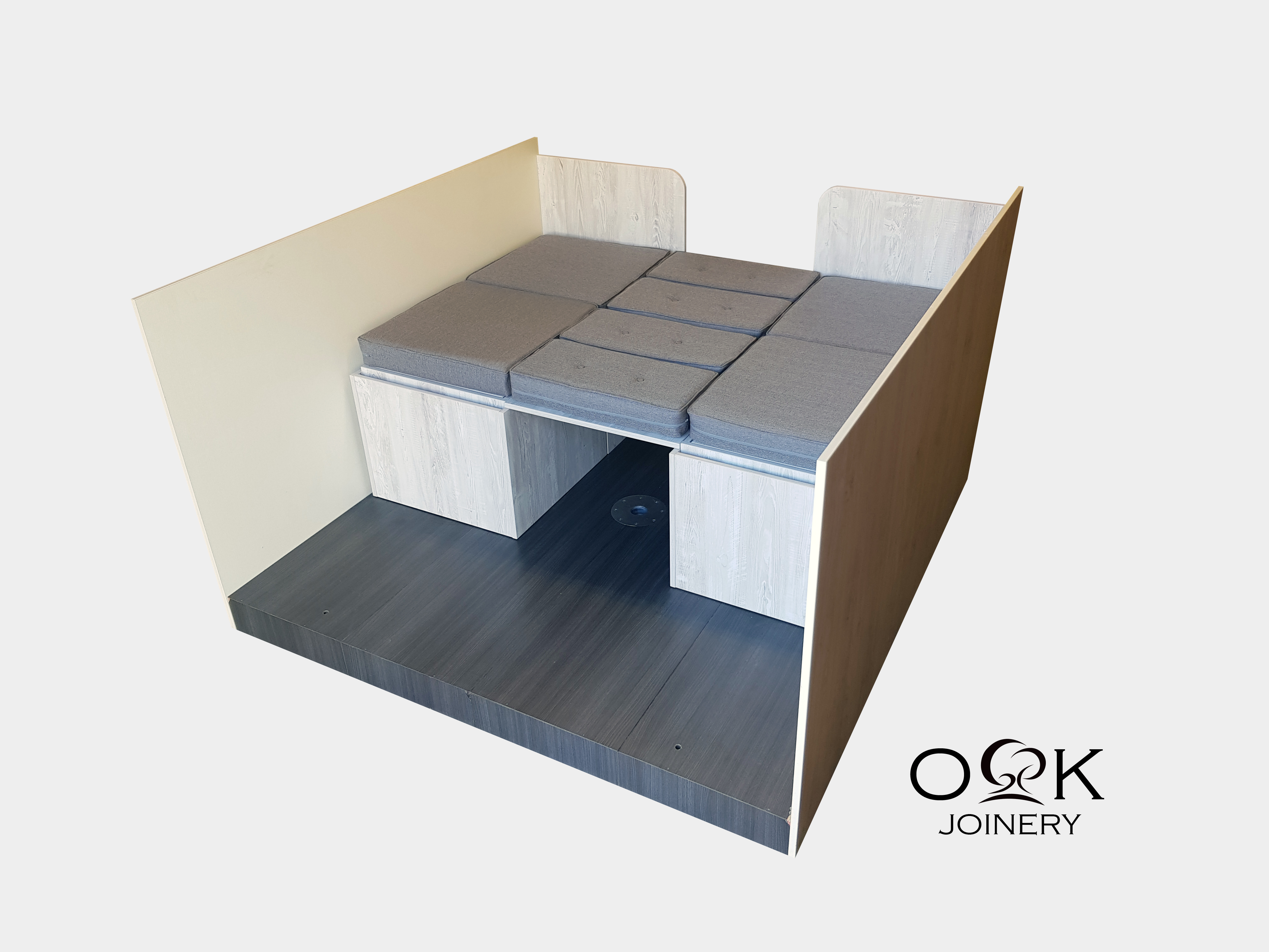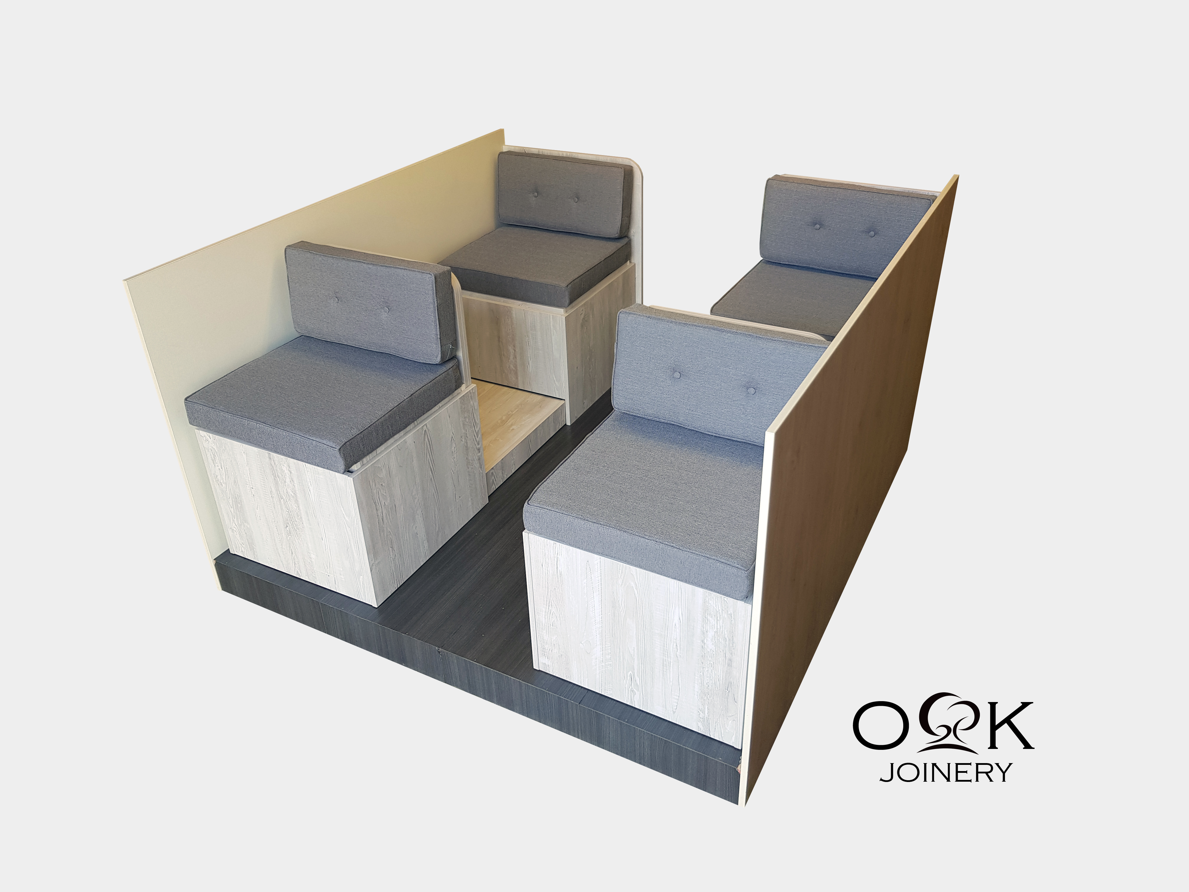 Small spaces need to be carefully curated. The furniture selected must reflect individual tastes and consider personal preferences. As with our dinette collections, OK Joinery multifunctional furniture is entirely customisable. Select from a wide variety of woodwork and cushion colours and we will deliver a bespoke piece that complements your living-space interior.
