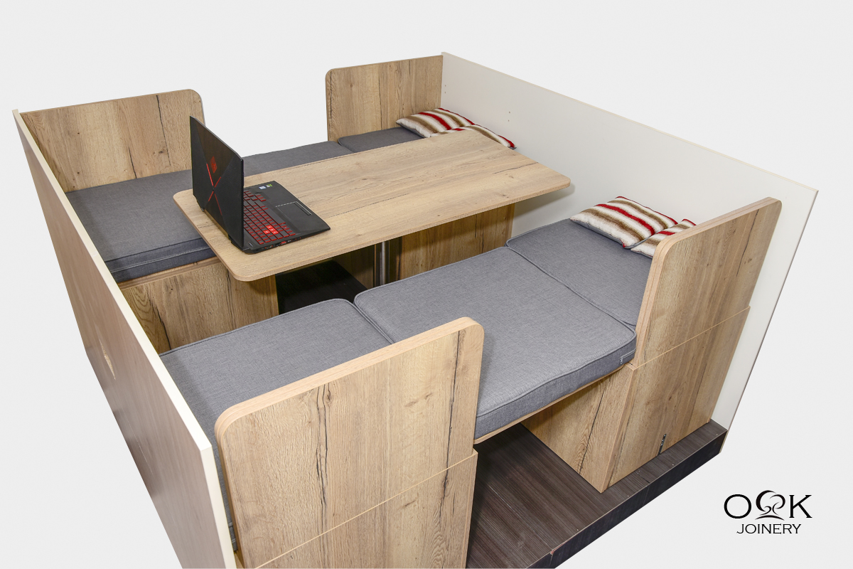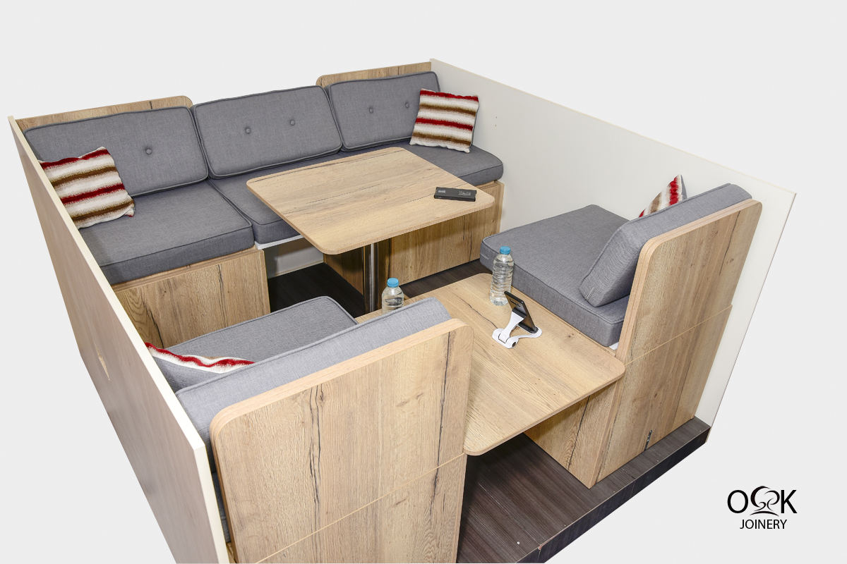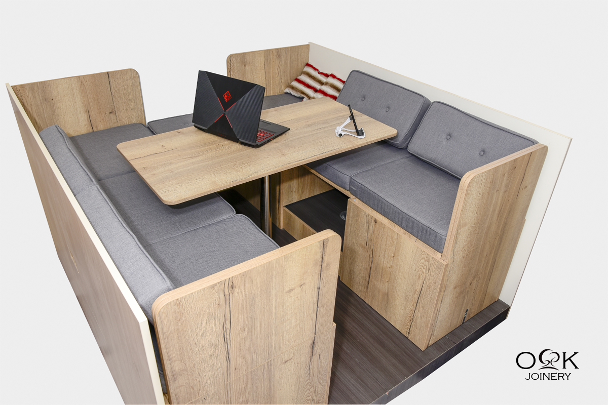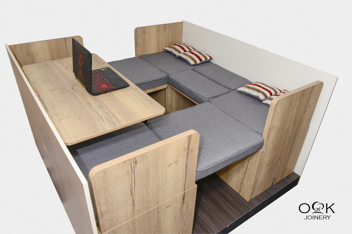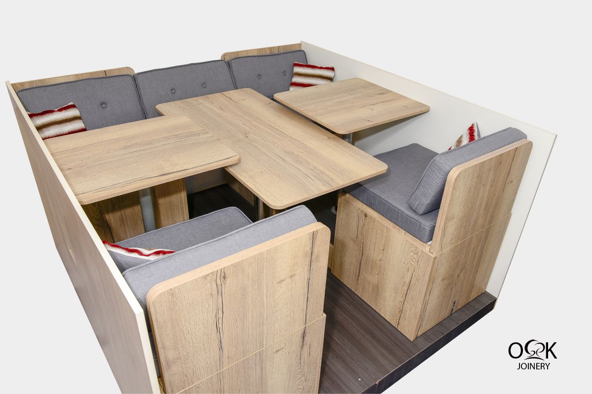 Small spaces need to be carefully curated. The furniture selected must reflect individual tastes and consider personal preferences. As with our dinette collections, OK Joinery multifunctional furniture is entirely customisable. Select from a wide variety of woodwork and cushion colours and we will deliver a bespoke piece that complements your living-space interior.