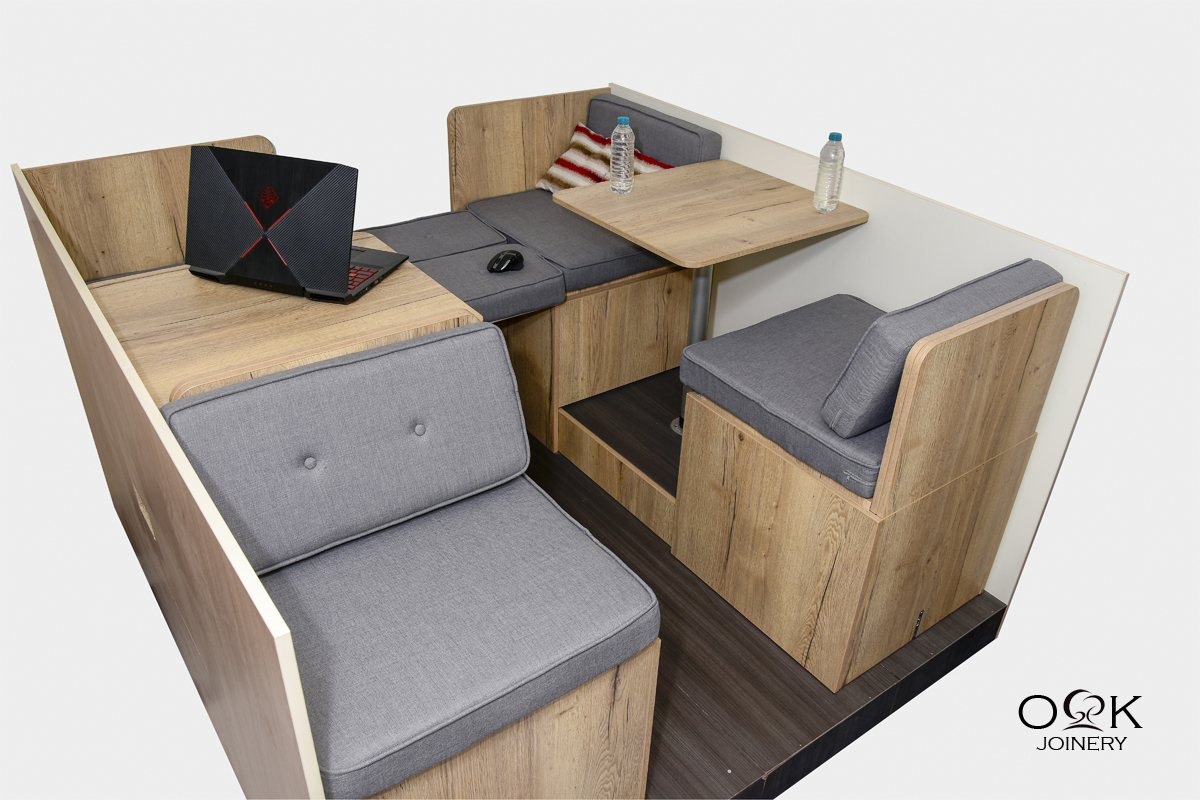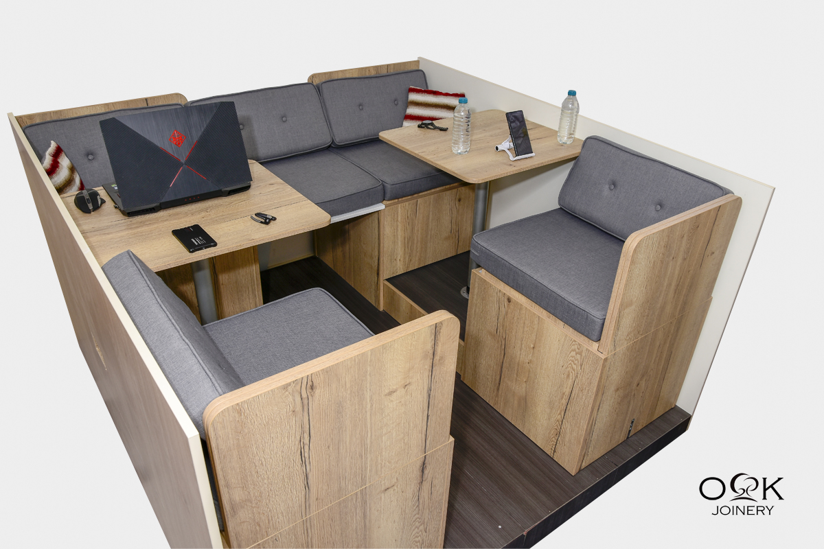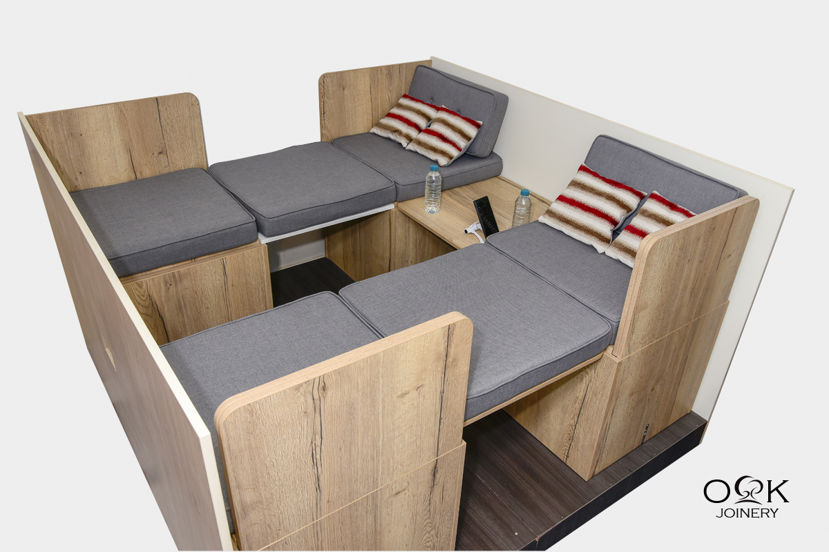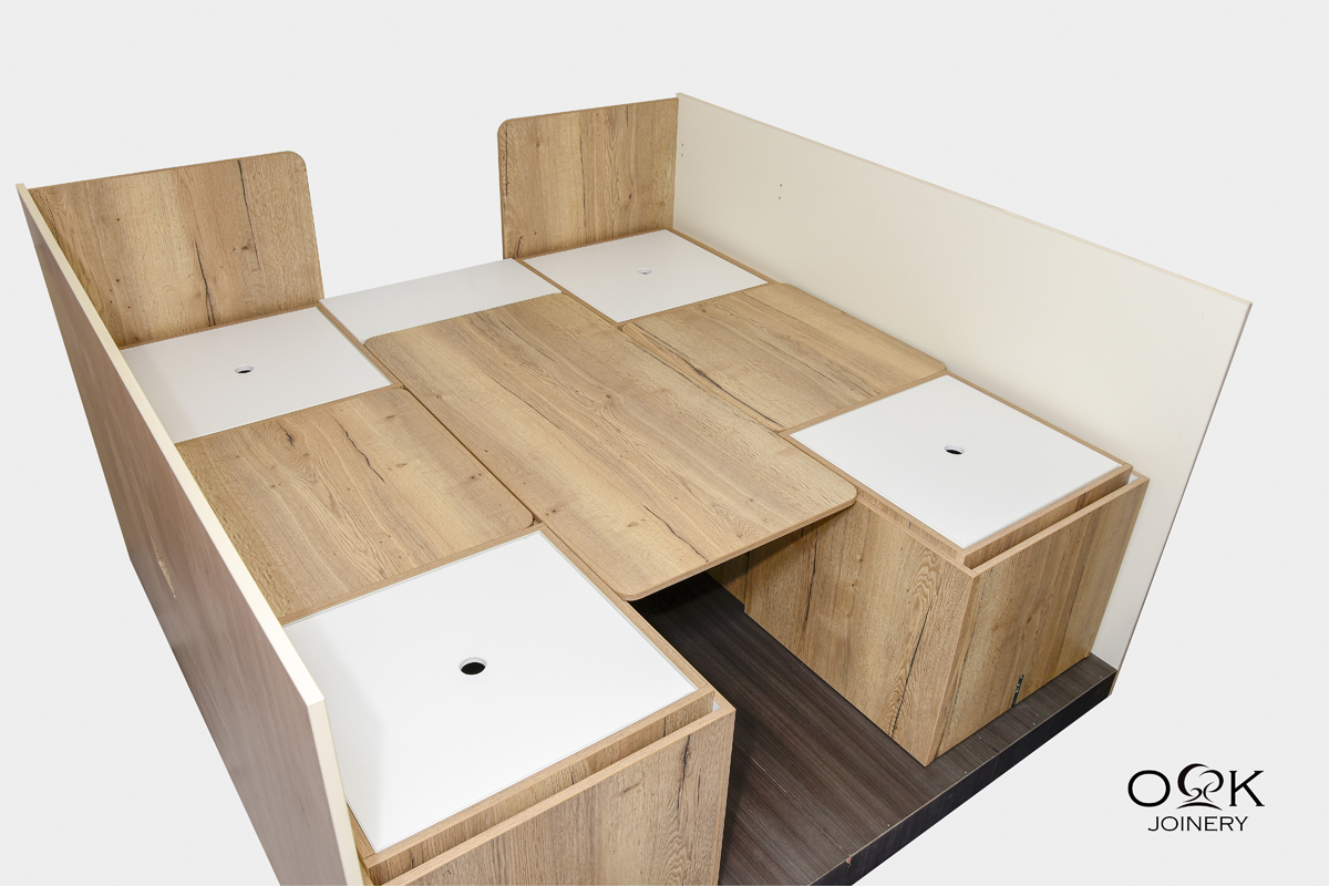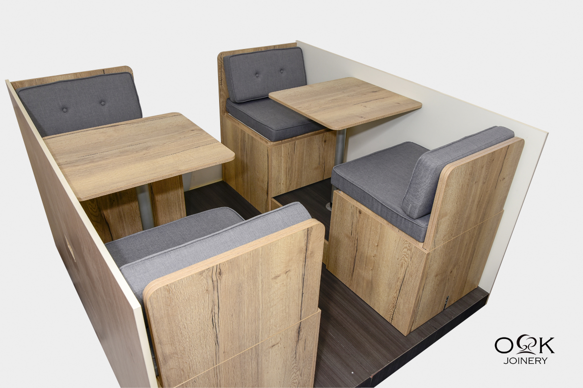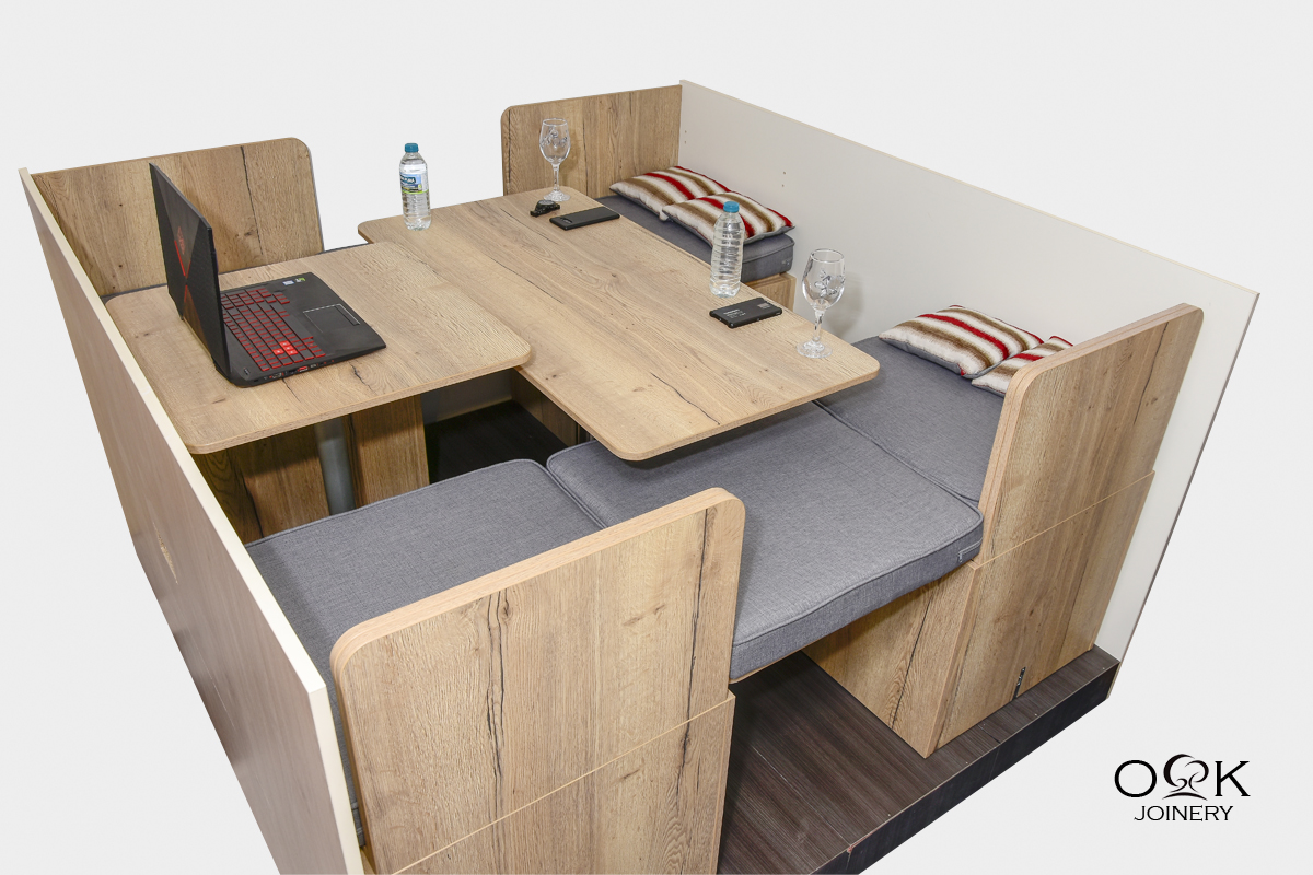 Small spaces need to be carefully curated. The furniture selected must reflect individual tastes and consider personal preferences. As with our dinette collections, OK Joinery multifunctional furniture is entirely customisable. Select from a wide variety of woodwork and cushion colours and we will deliver a bespoke piece that complements your living-space interior.