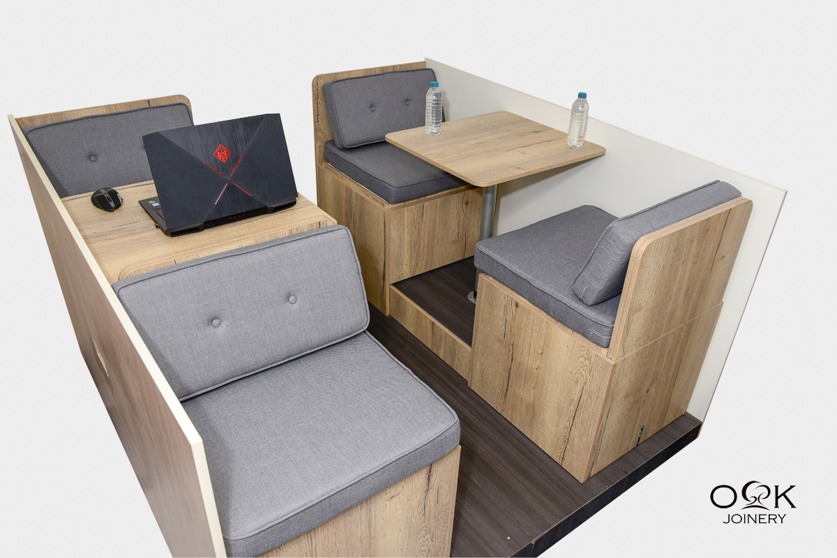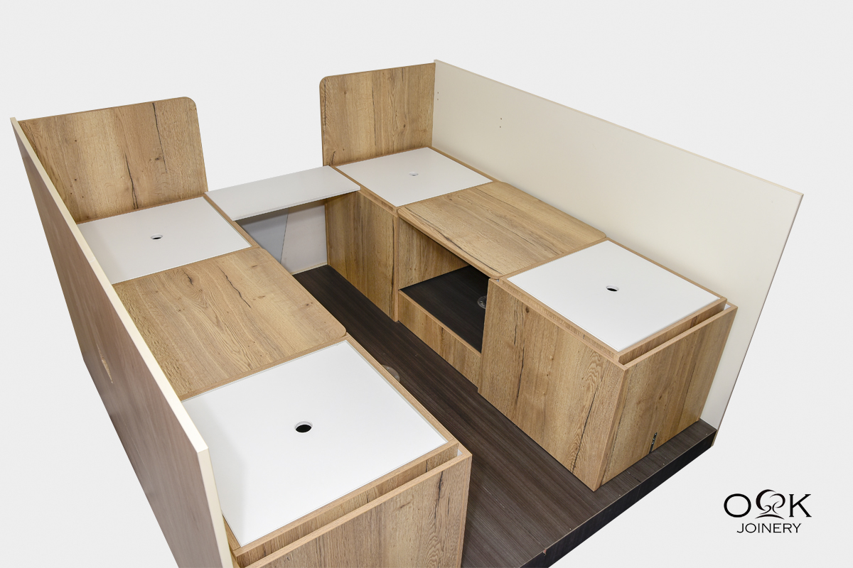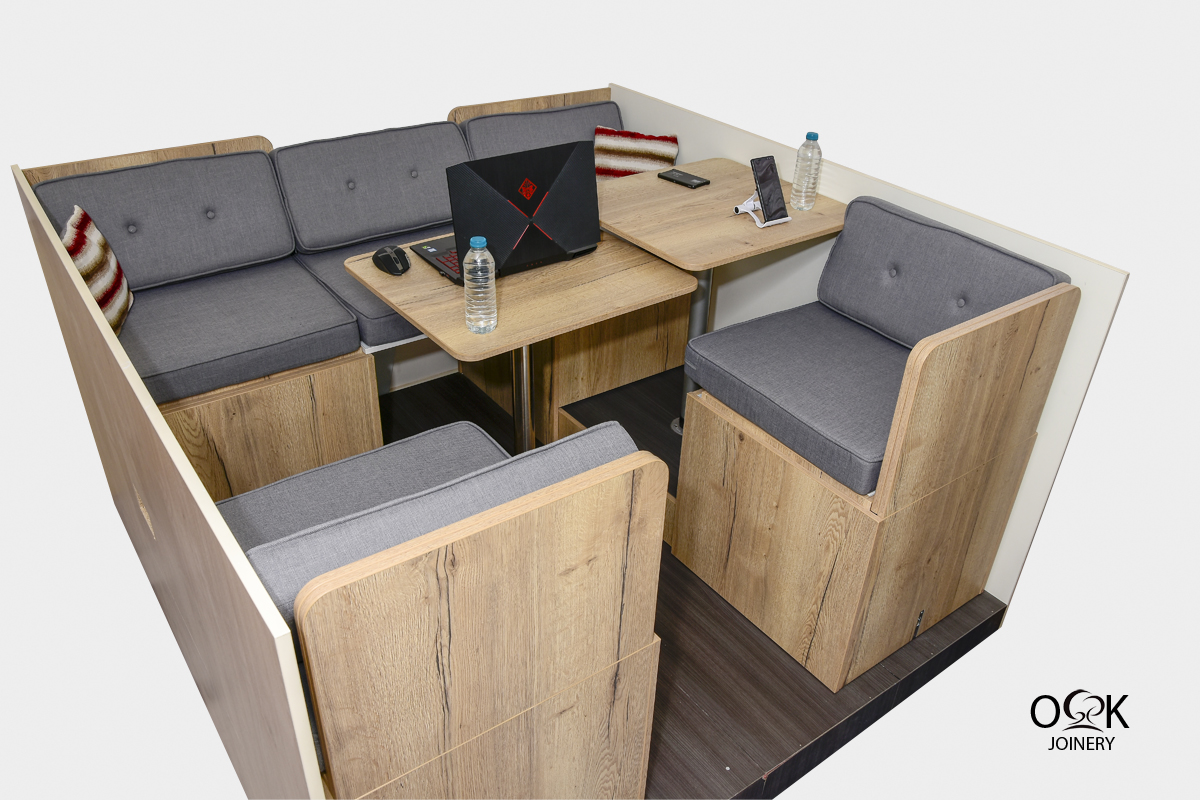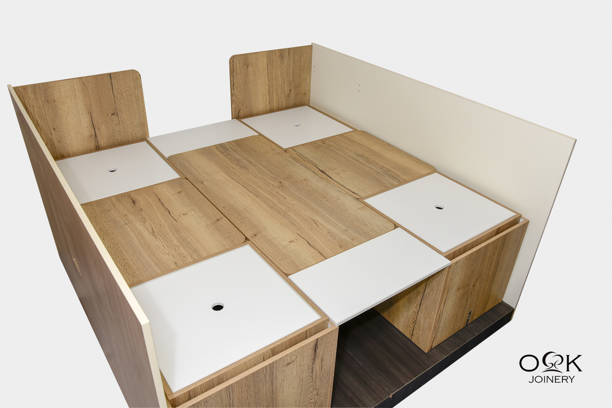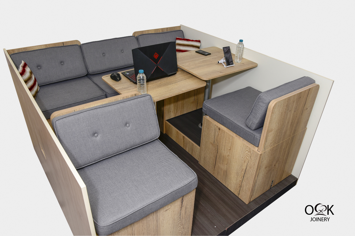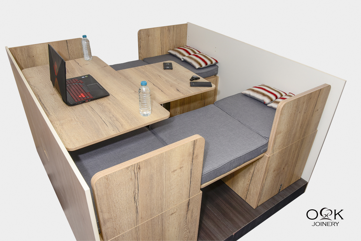 Small spaces need to be carefully curated. The furniture selected must reflect individual tastes and consider personal preferences. As with our dinette collections, OK Joinery multifunctional furniture is entirely customisable. Select from a wide variety of woodwork and cushion colours and we will deliver a bespoke piece that complements your living-space interior.