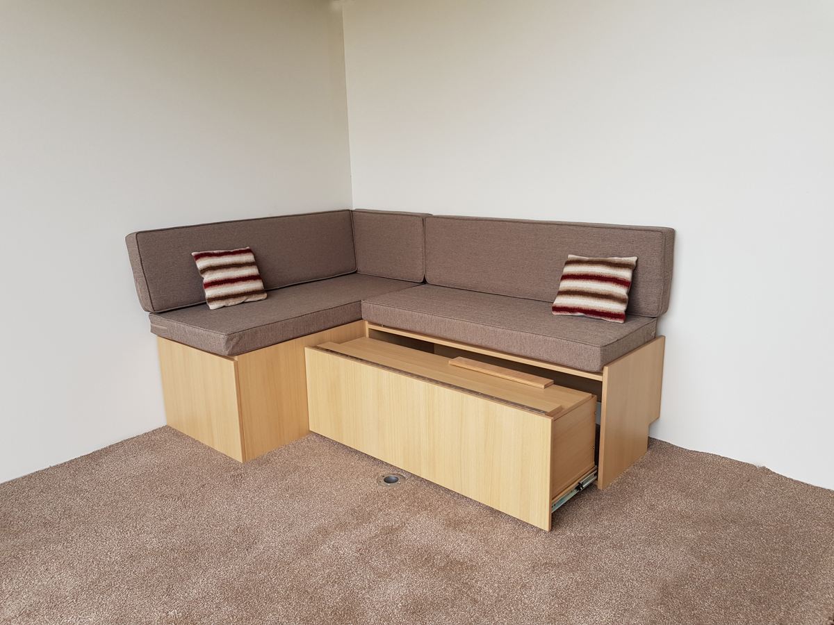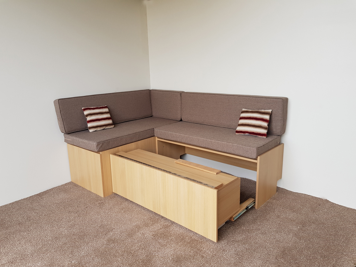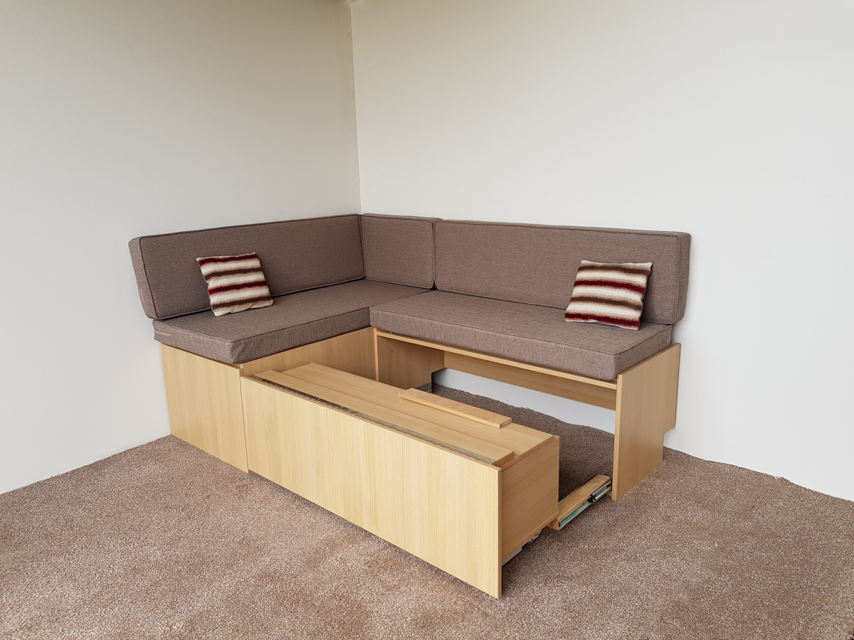 Our Extra Wide L-shape Dinette is a testament to UK craftsmanship, offering a sturdy, stylish and large (yet compact) addition to your cabin interior.