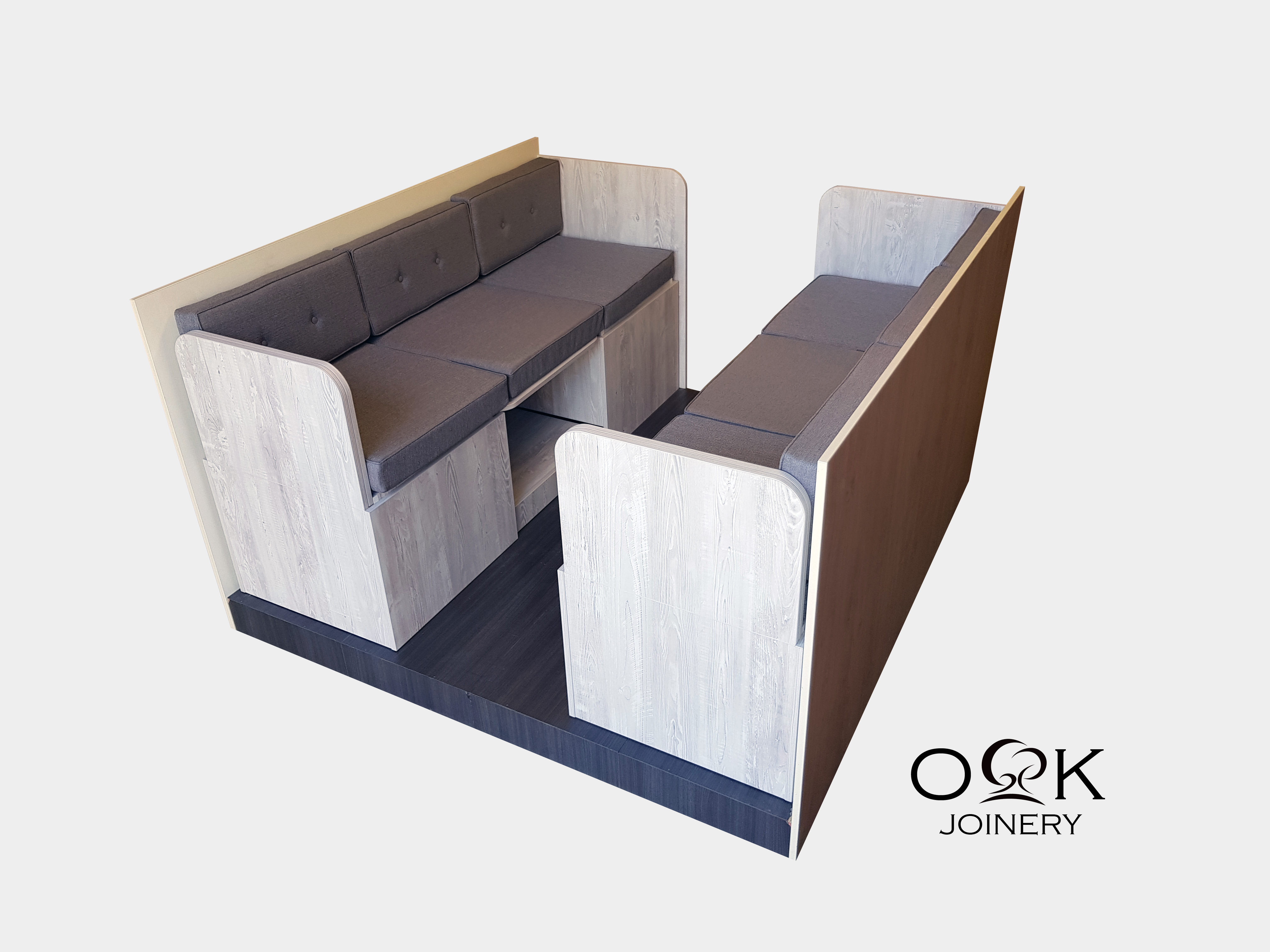 Small spaces need to be carefully curated. The furniture selected must reflect individual tastes and consider personal preferences. As with our dinette collections, OK Joinery multifunctional furniture is entirely customisable. Select from a wide variety of woodwork and cushion colours and we will deliver a bespoke piece that complements your living-space interior.