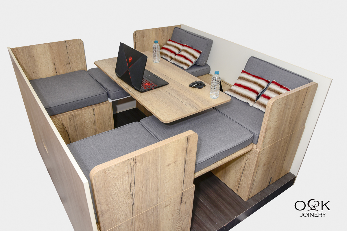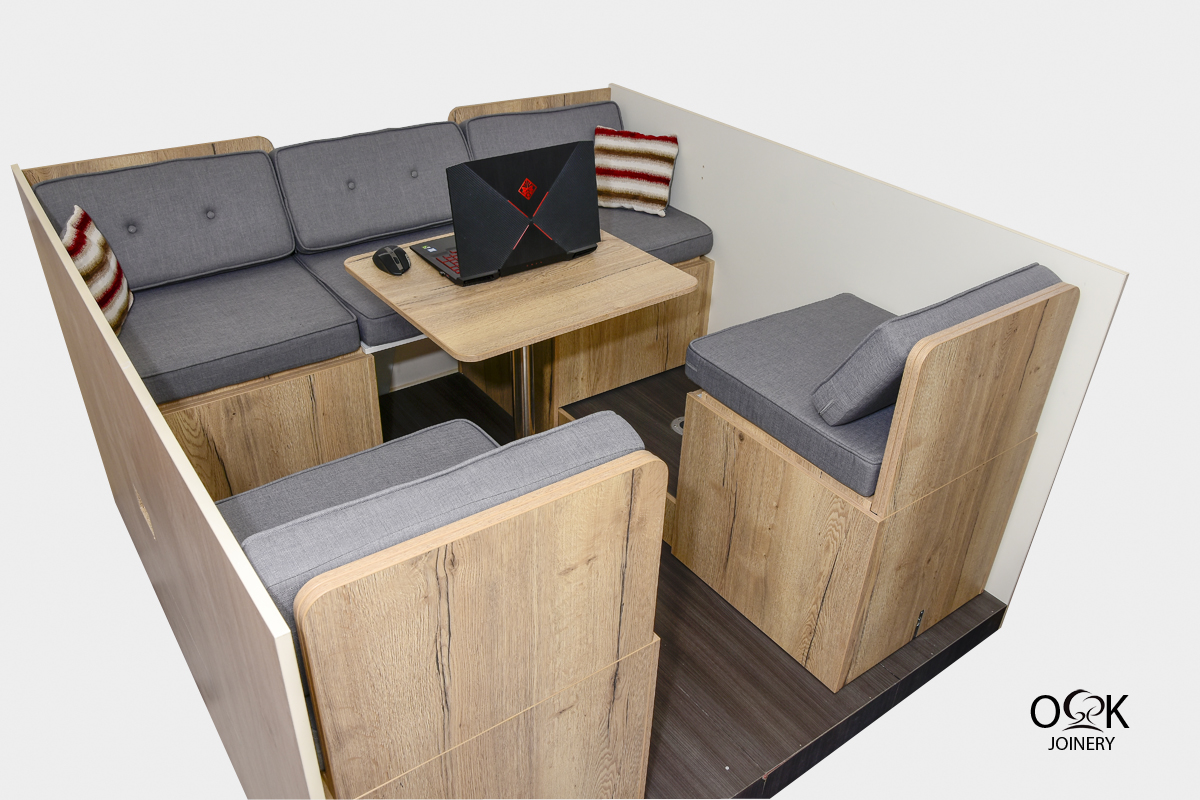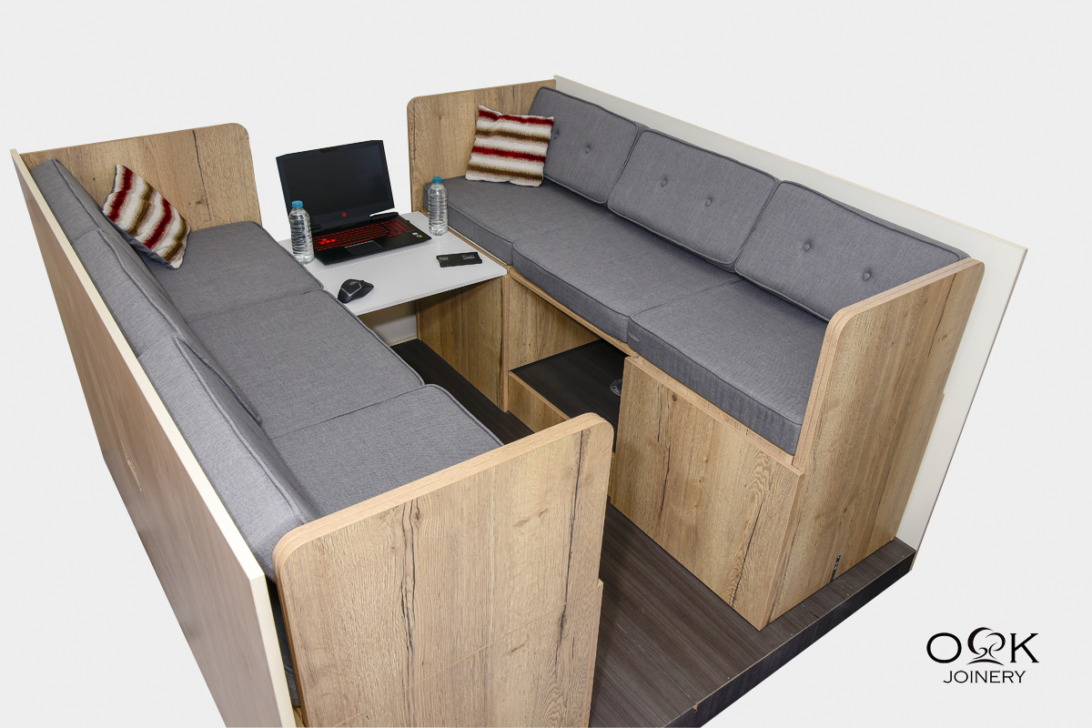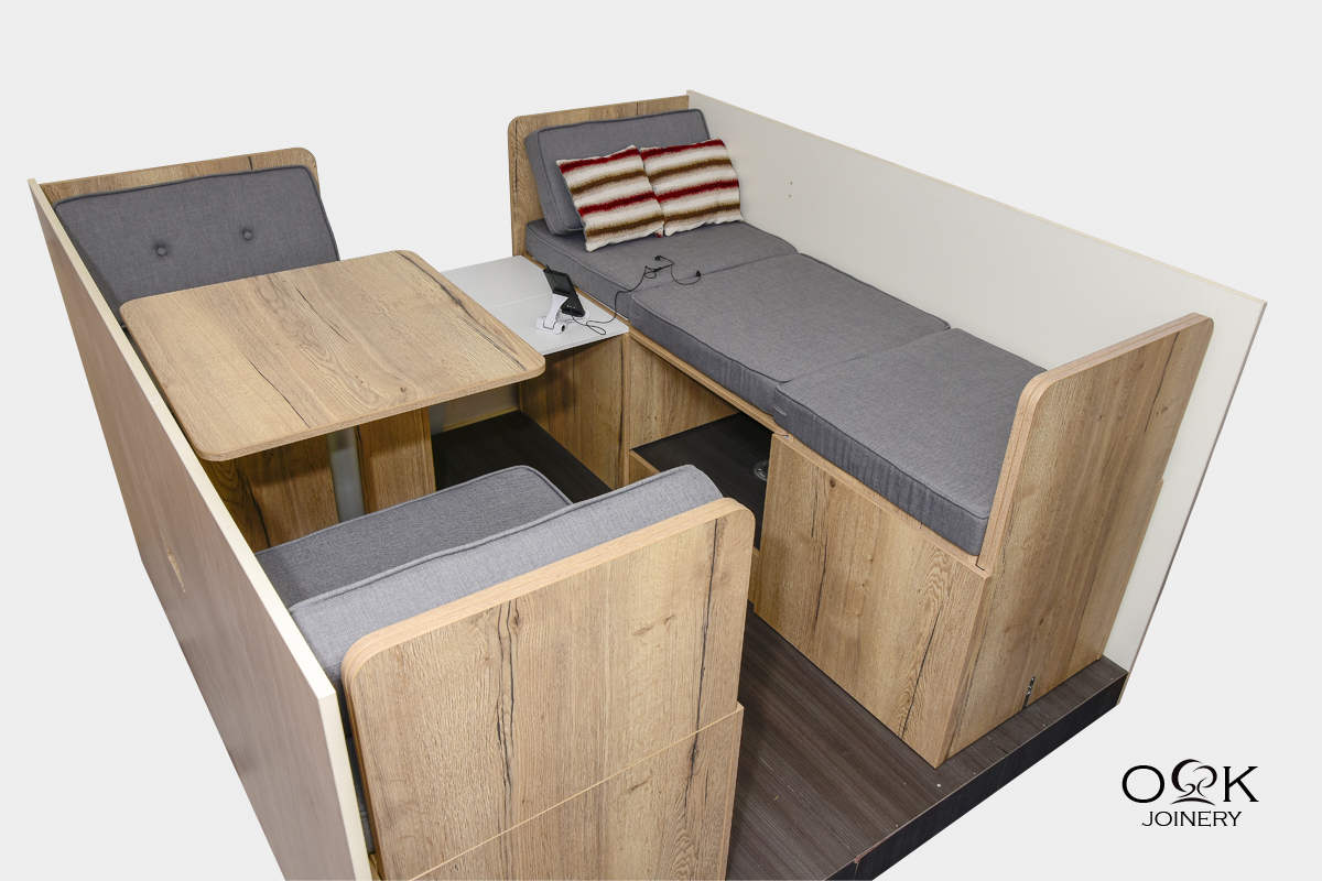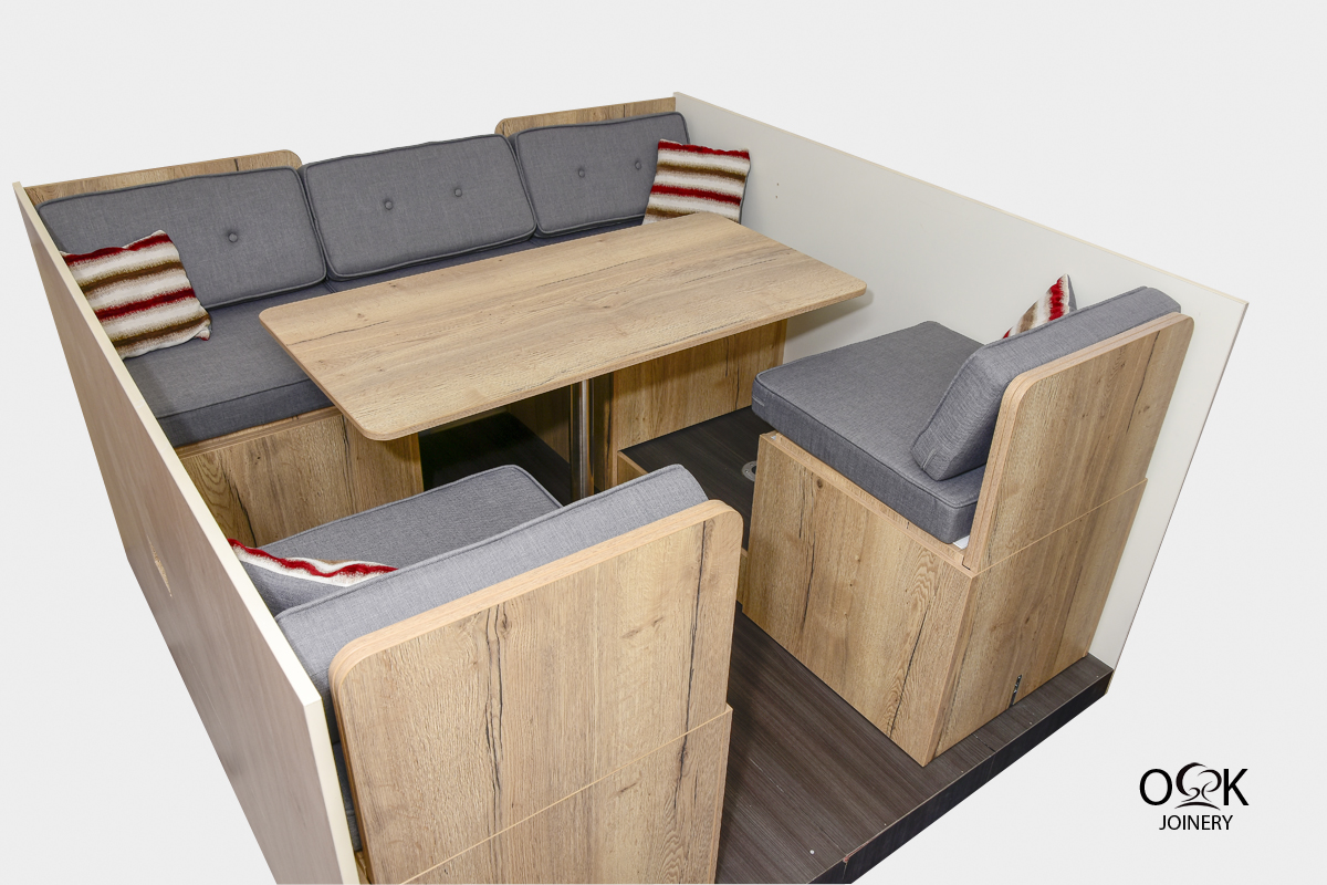 Small spaces need to be carefully curated. The furniture selected must reflect individual tastes and consider personal preferences. As with our dinette collections, OK Joinery multifunctional furniture is entirely customisable. Select from a wide variety of woodwork and cushion colours and we will deliver a bespoke piece that complements your living-space interior.