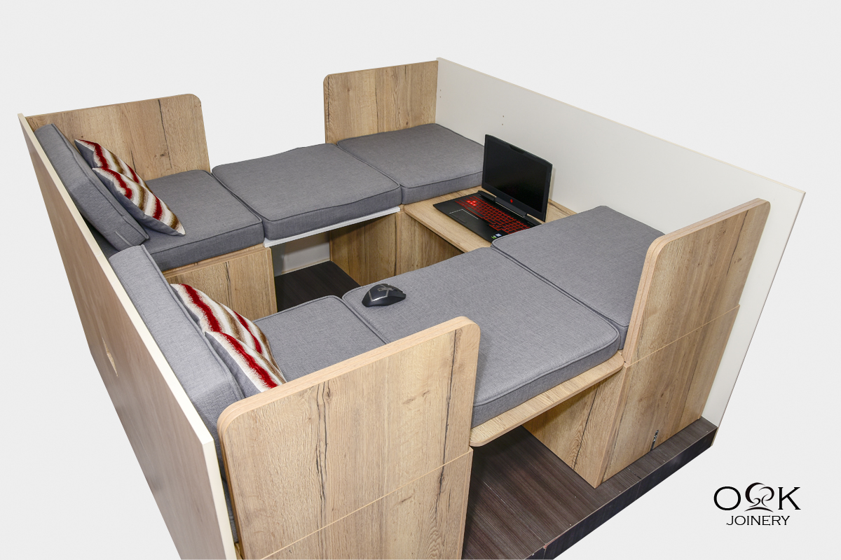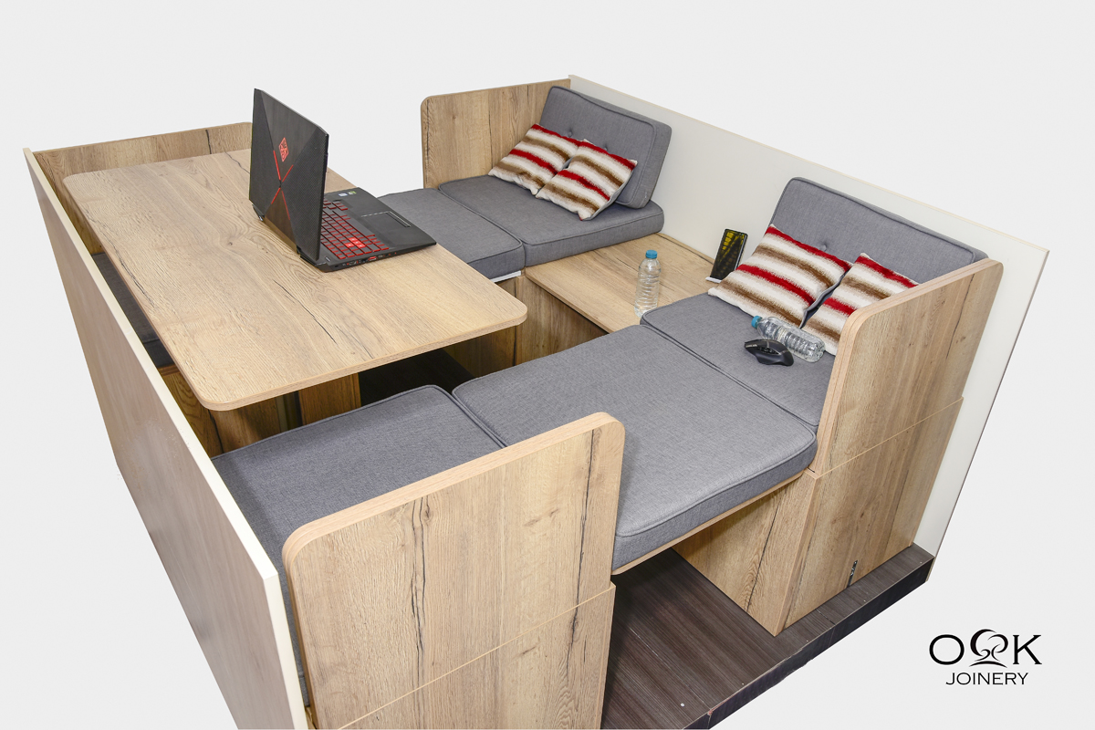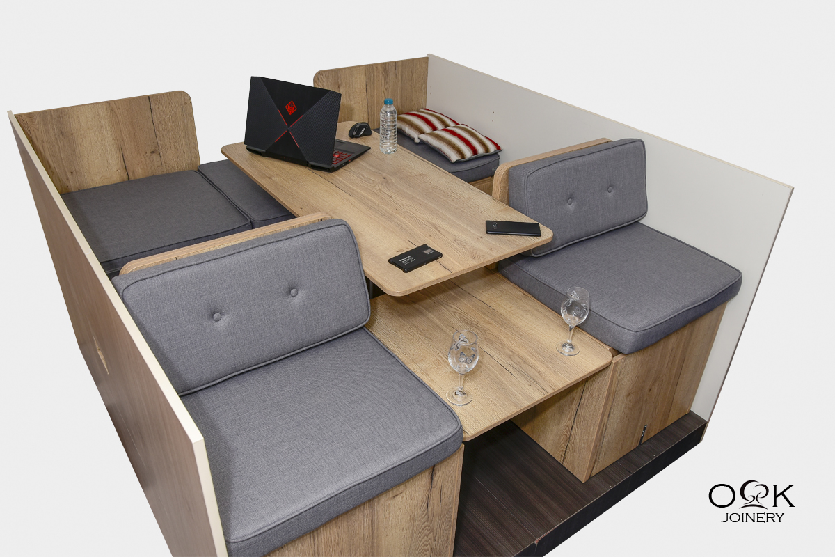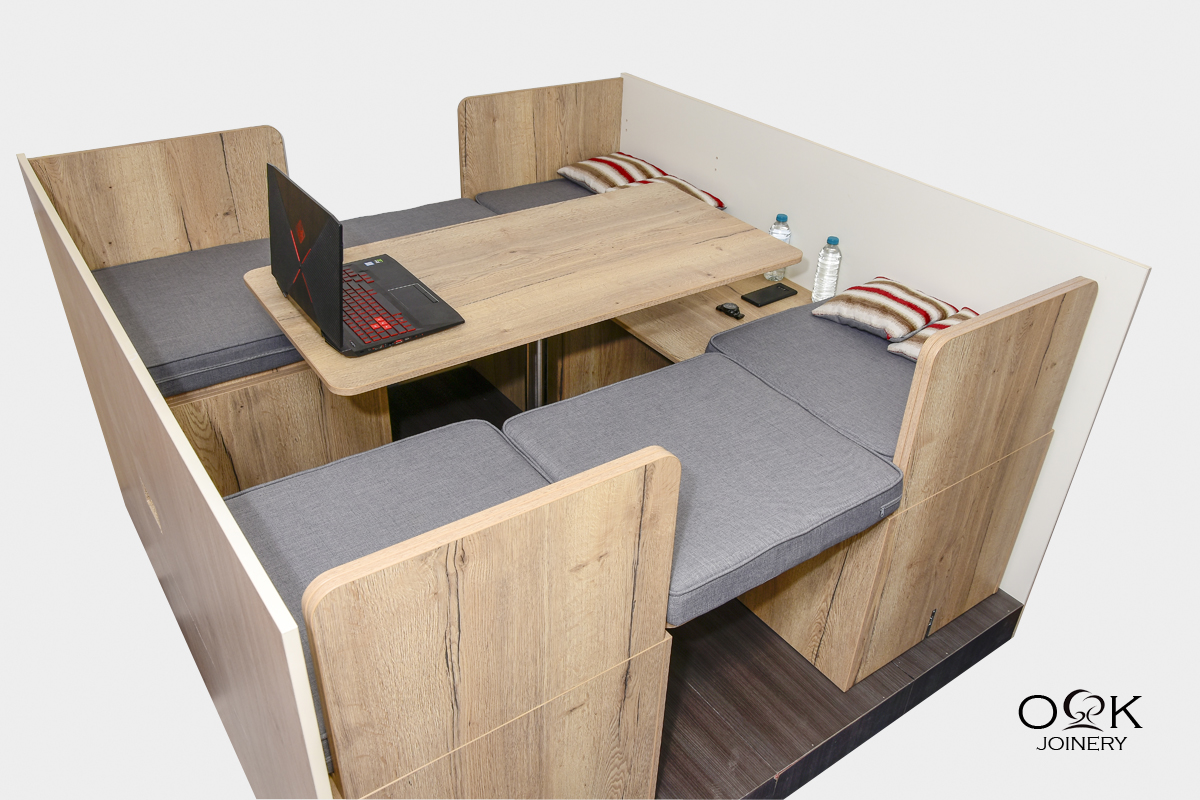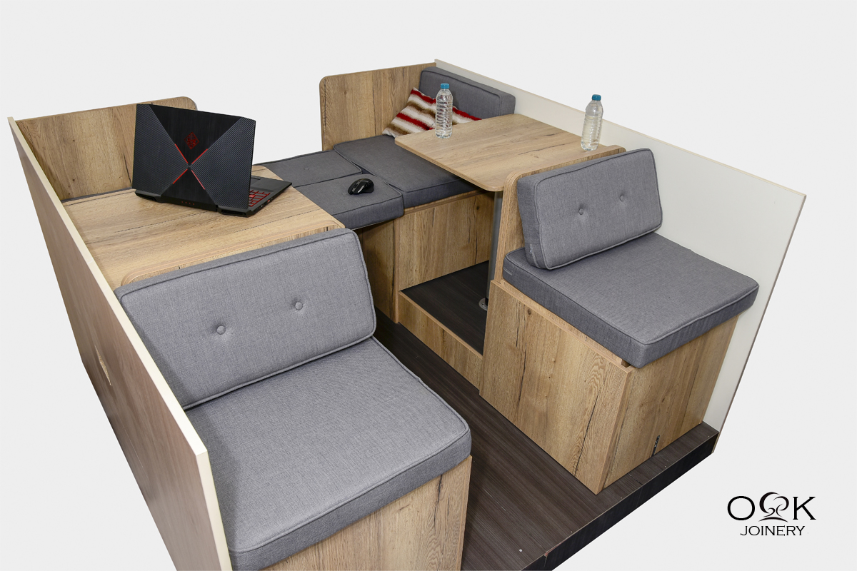Small spaces need to be carefully curated. The furniture selected must reflect individual tastes and consider personal preferences. As with our dinette collections, OK Joinery multifunctional furniture is entirely customisable. Select from a wide variety of woodwork and cushion colours and we will deliver a bespoke piece that complements your living-space interior.
