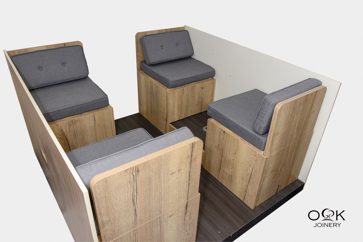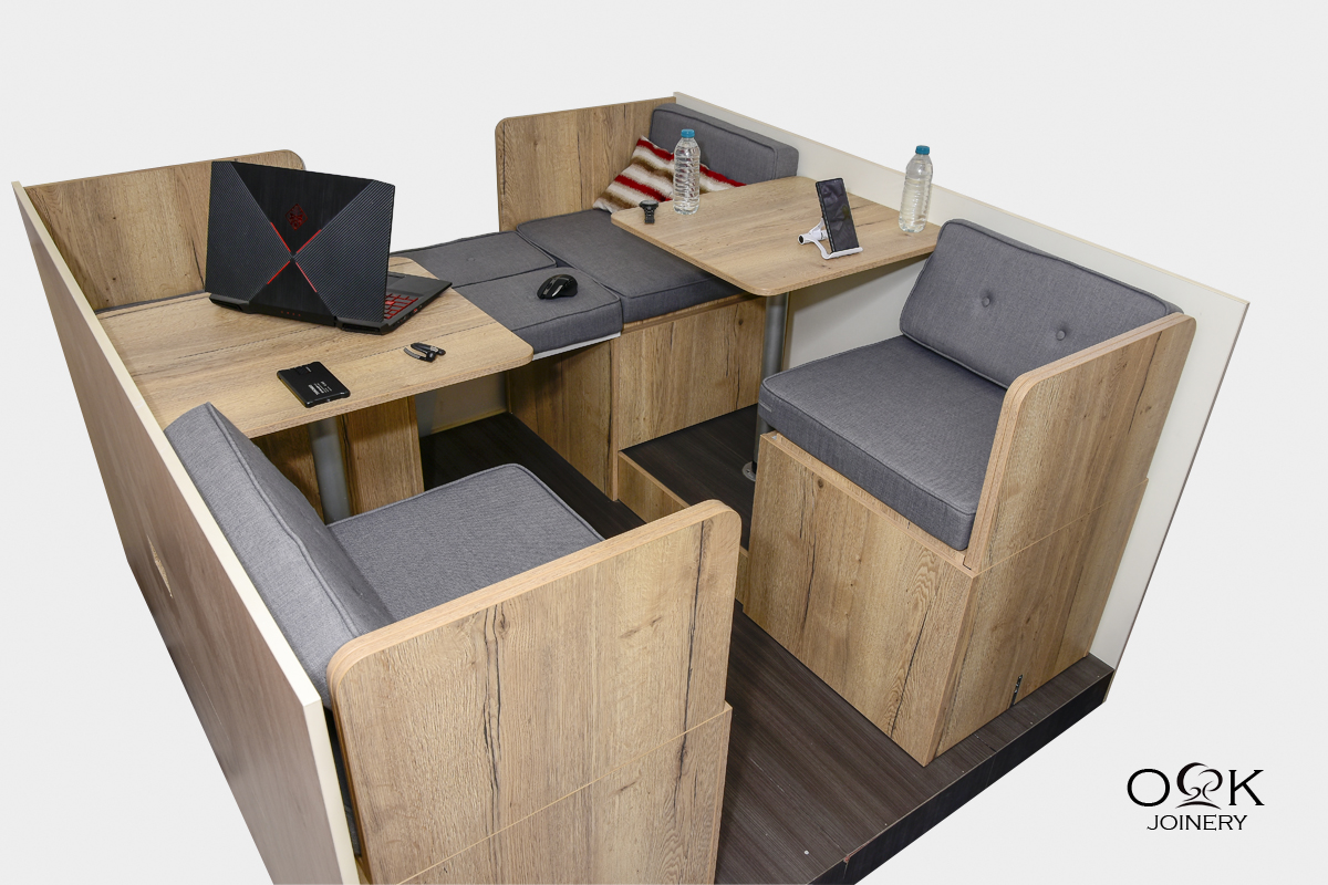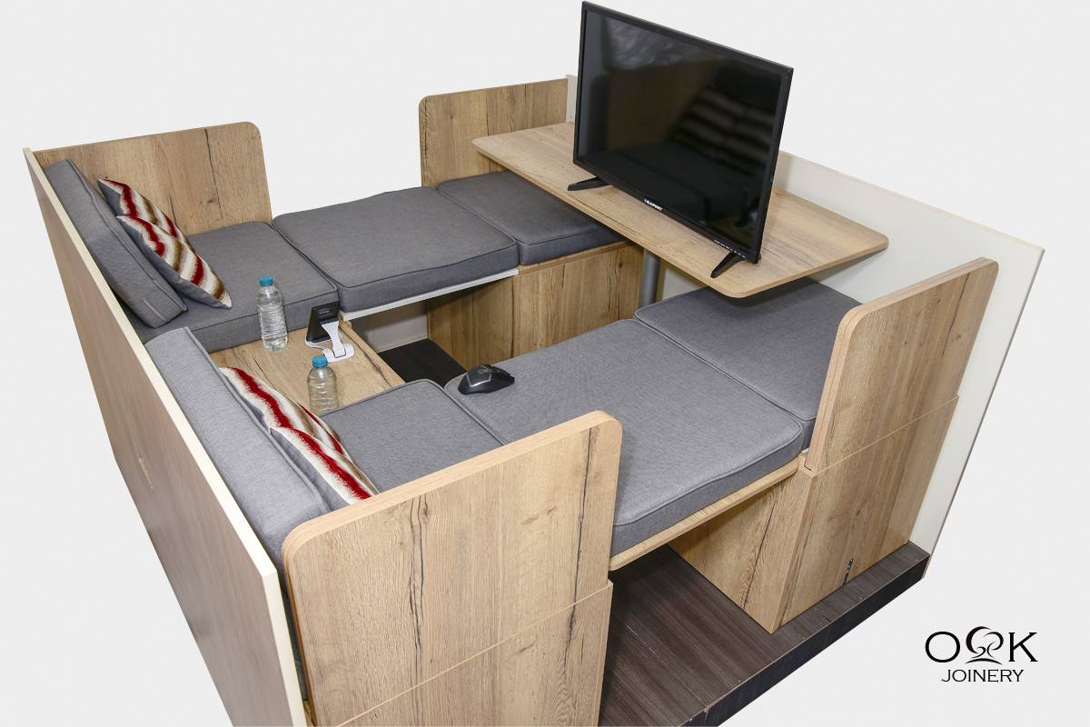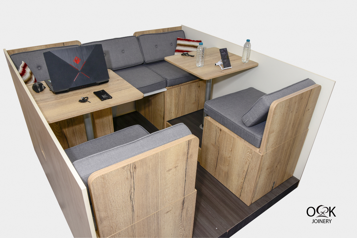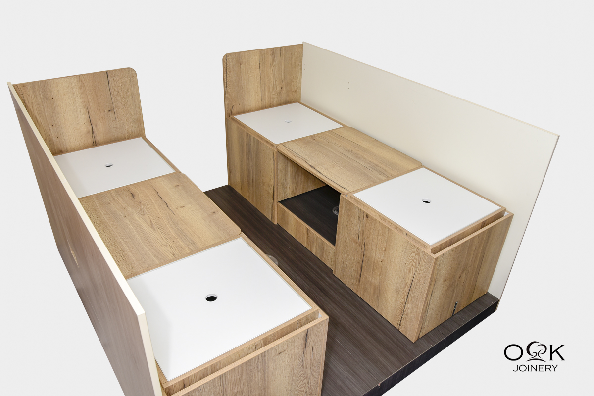 Small spaces need to be carefully curated. The furniture selected must reflect individual tastes and consider personal preferences. As with our dinette collections, OK Joinery multifunctional furniture is entirely customisable. Select from a wide variety of woodwork and cushion colours and we will deliver a bespoke piece that complements your living-space interior.