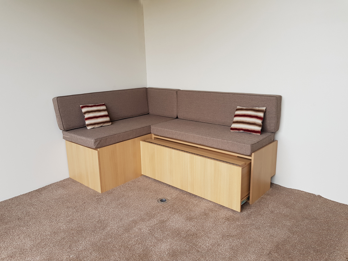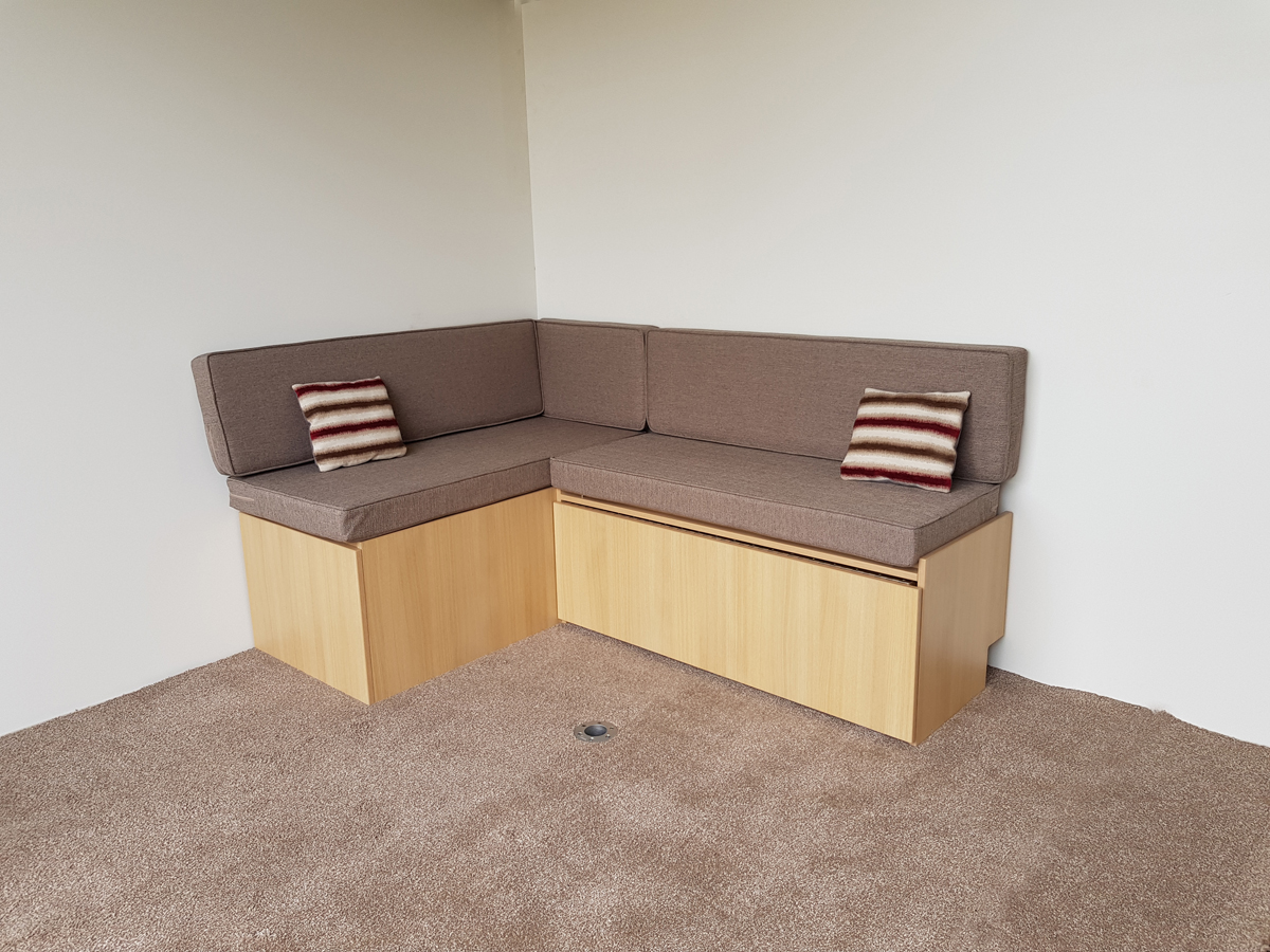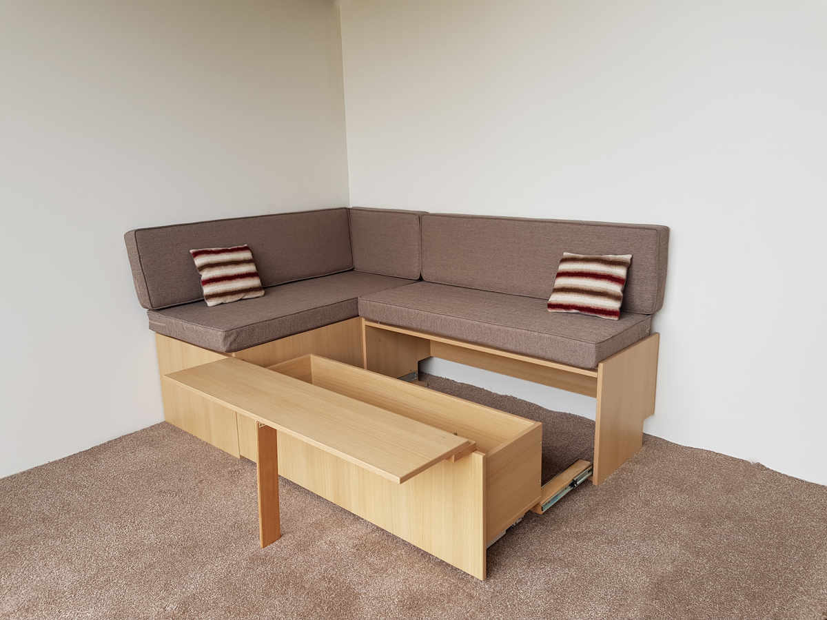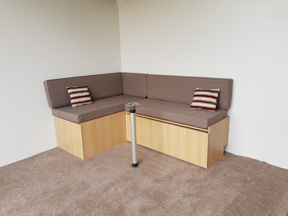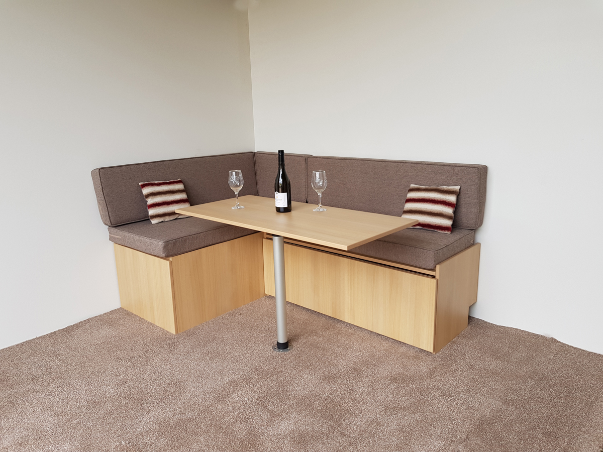 Our Extra Wide L-shape Dinette is a testament to UK craftsmanship, offering a sturdy, stylish and large (yet compact) addition to your cabin interior.