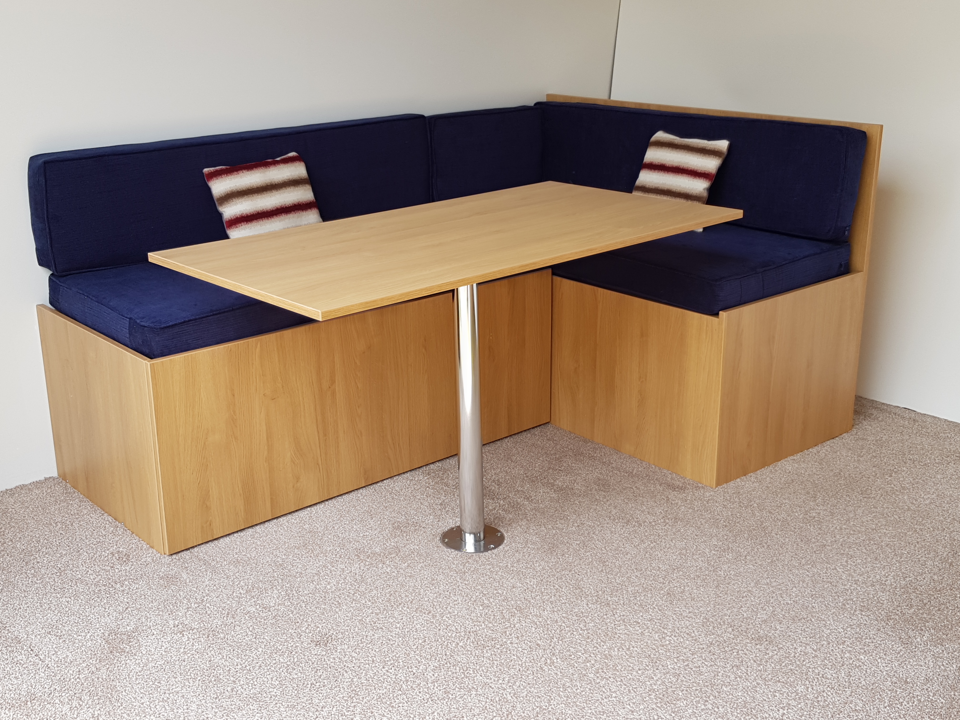 Our L-shape Dinette is a testament to UK craftsmanship, offering a sturdy and stylish addition to your boat cabin interiors.