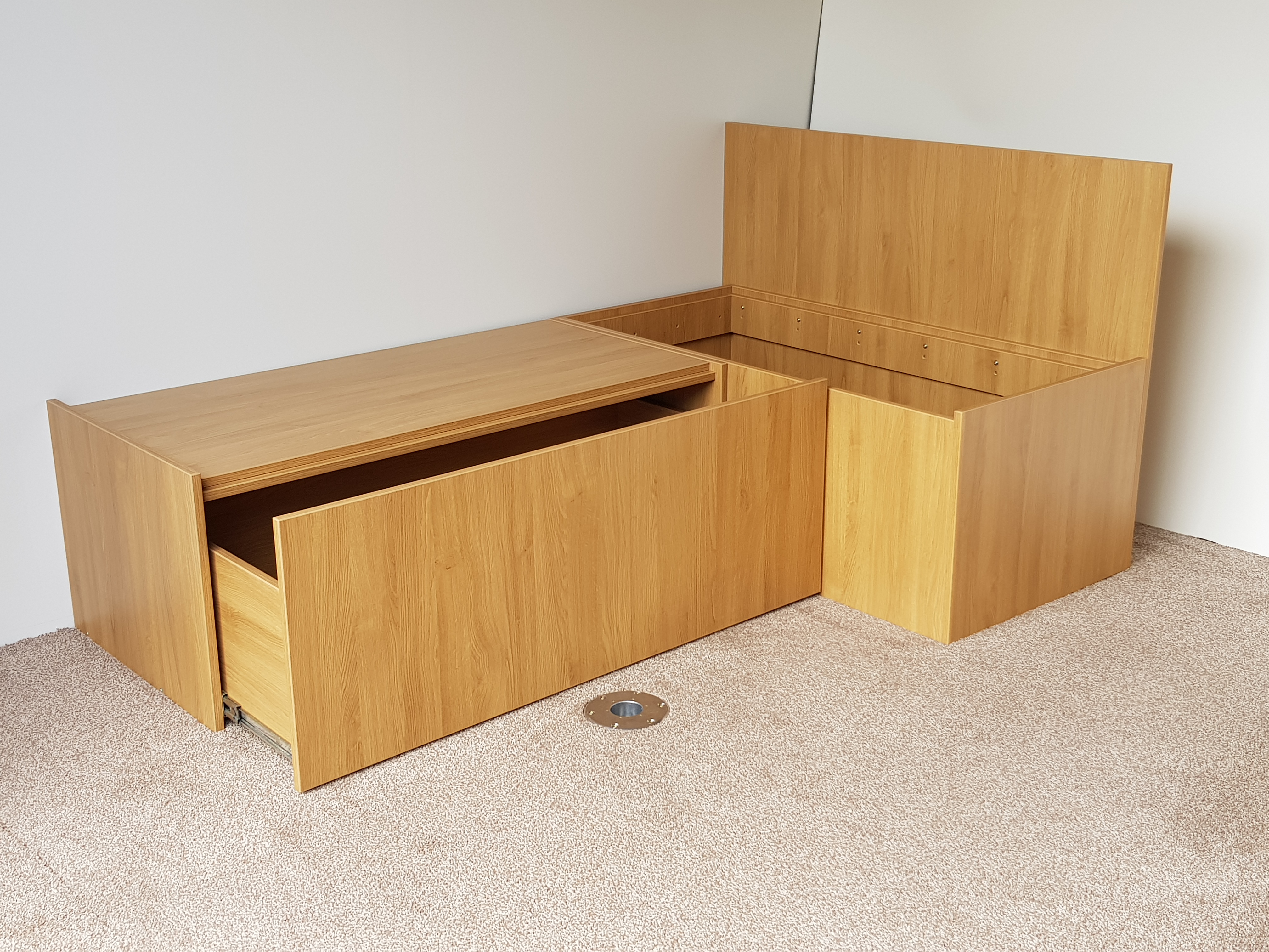 The L-shape Dinette offers a cosy corner sofa for daytime use, a convenient 4-seater dining set, and a comfortable double bed at night. It is the perfect blend of functionality, style, and comfort in your bespoke narrowboat furniture selection.
