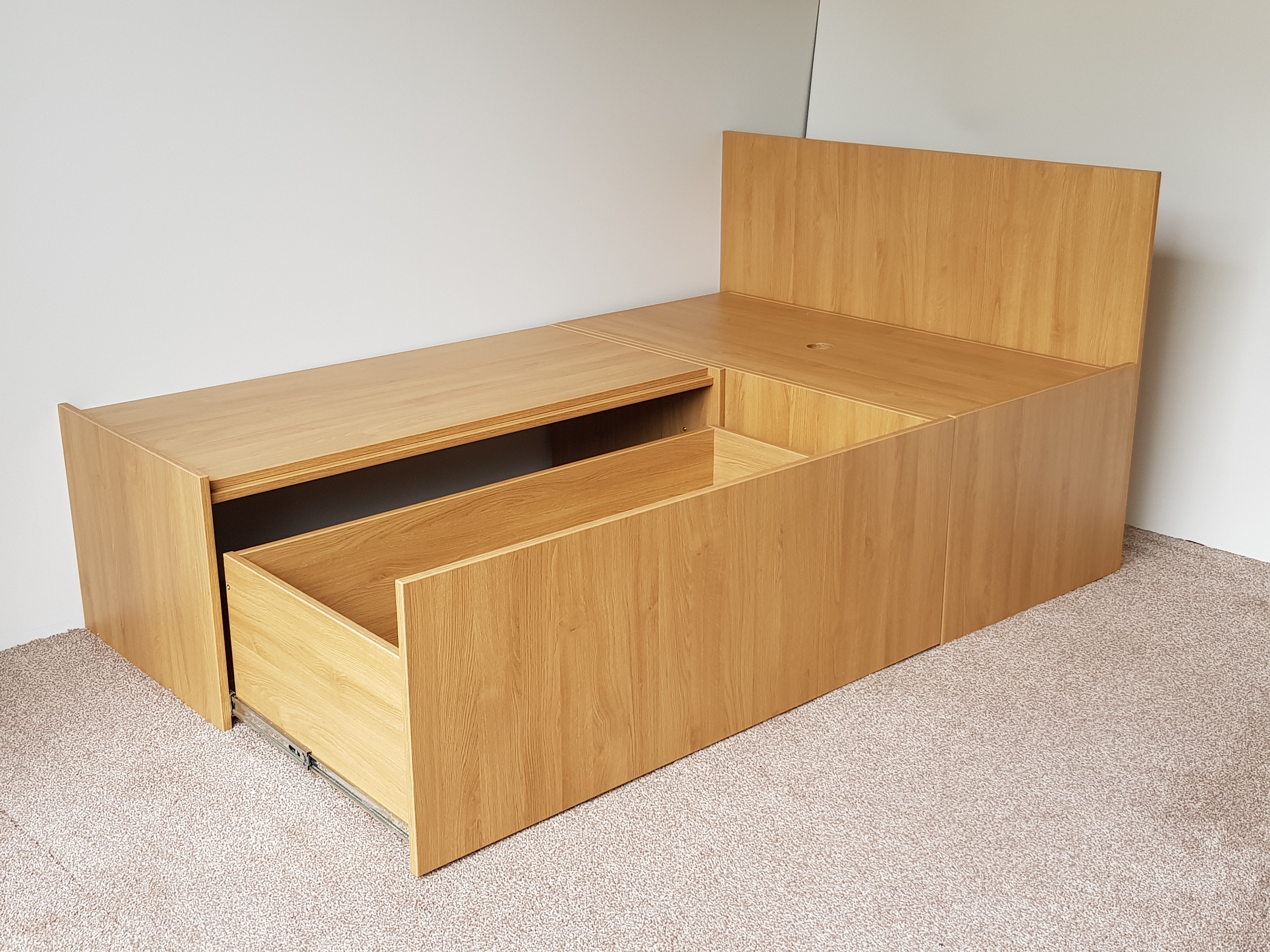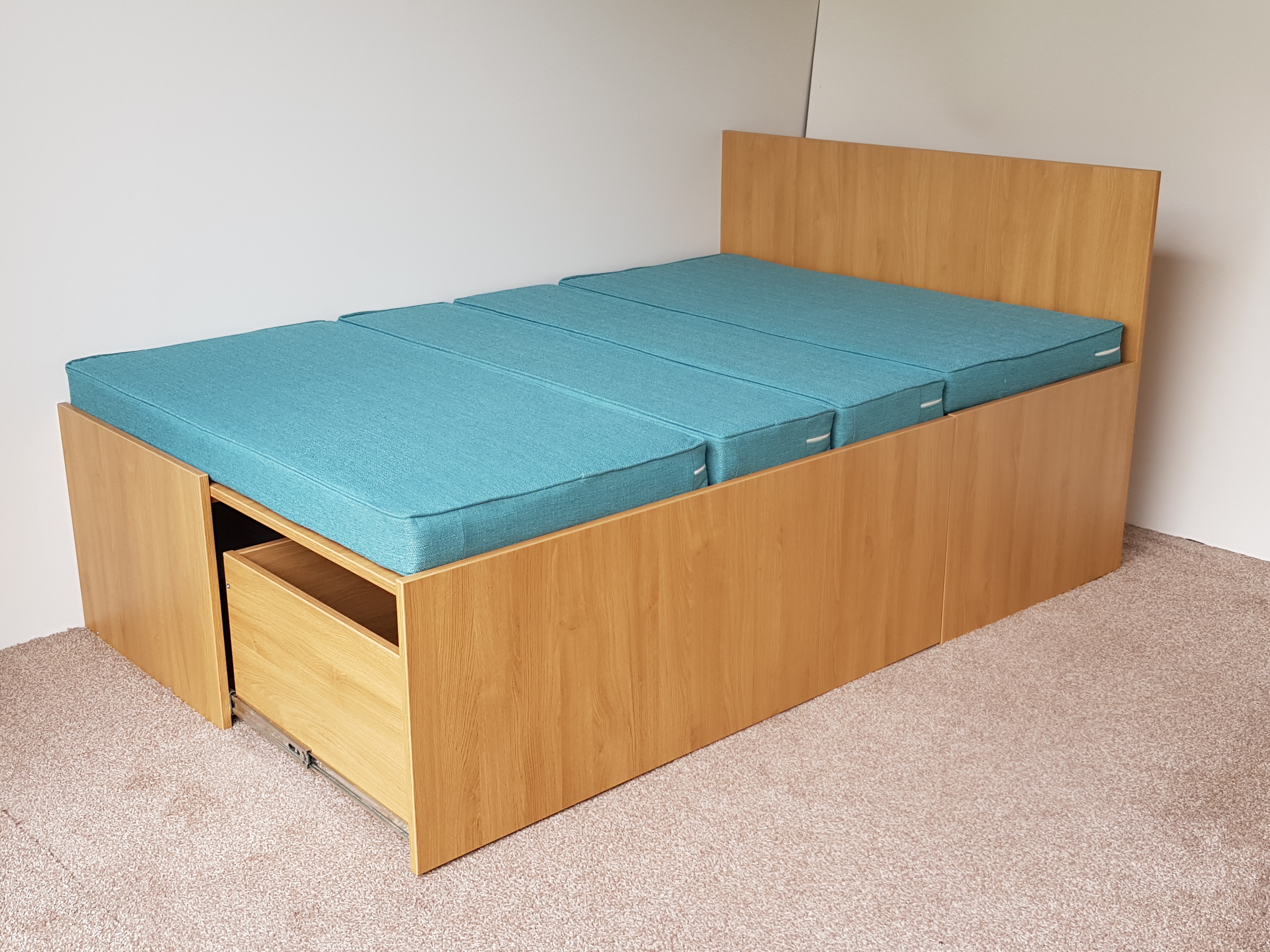 Our L-shape Dinette is a multipurpose masterpiece, converting smoothly from a corner sofa or 4-seater dining set to a large double bed. This 3-in-1 solution highlights our innovation in space-saving narrowboat furniture.